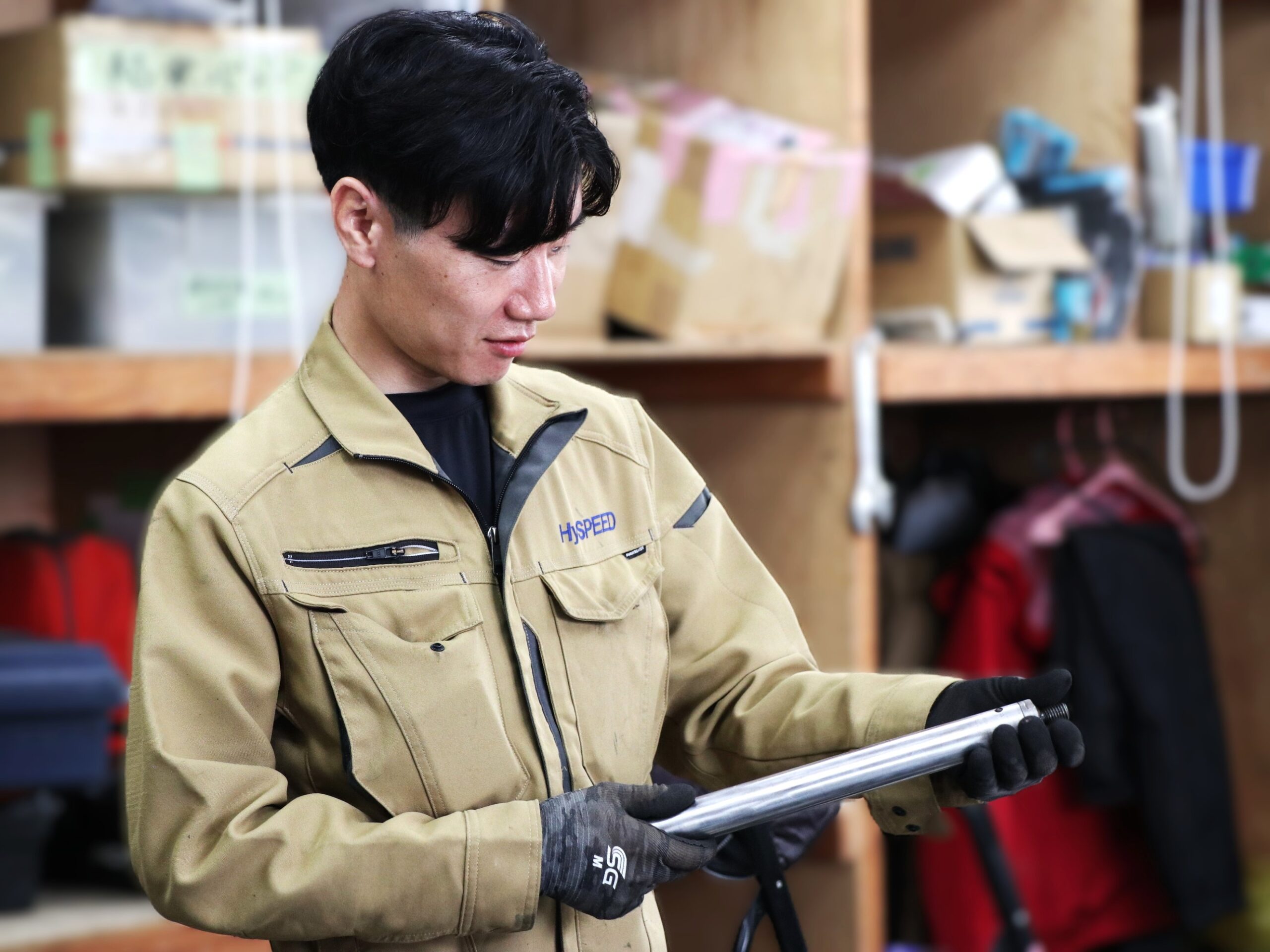 - 技術開発部では施工代理店様の施工支援や修理対応、従来工法の機材の改善、新しい技術の開発作業など幅広い業務を行っております。そのため新しいことにチャレンジしていき、自分の成長を実感した時にやりがいを感じます。 また業務上、日本全国を回る機会もあります。以前は機材のメンテナンス研修として、全国の施工代理店様とお会いしました。工事に使用する機材は高額なものばかりですが、正しいメンテナンスを行うことで、長く安全に使うことができ、コストの削減にもつながります。経営者から現場の方といった様々な立場の方のお話を聞くことができるのも勉強になり、面白い部分だと思います。