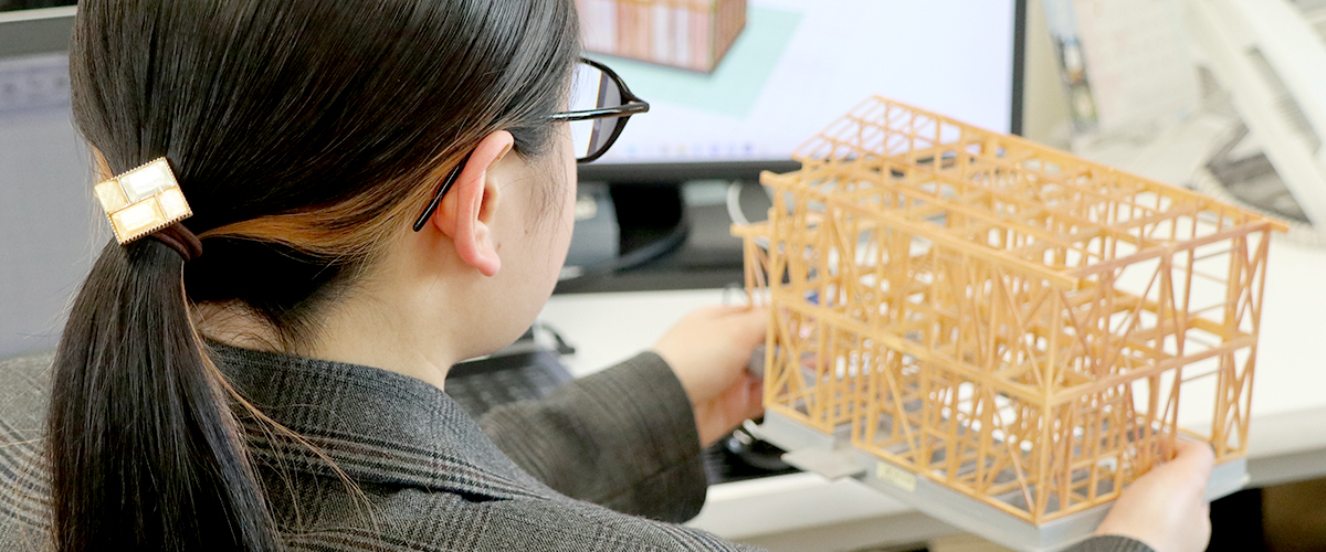 建物の安全性、耐久性などを確保するための設計工程で、柱や梁などの配置を計画し、物理学に基づいた計算により安全性を確認する仕事です。意匠設計や設備設計などと連携して建築に取り組みます。